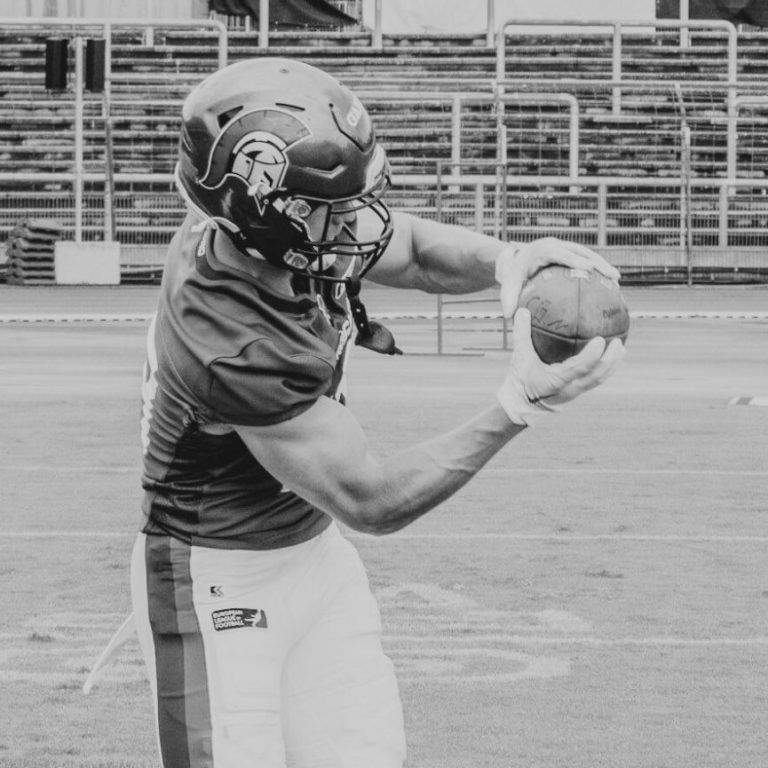 Mit einer 4.49 Sekunden auf 40 Yards und explosiver Athletik ist Lander Goossens ein Wide Receiver, der mit Tempo und Präzision überzeugt. Seine Fähigkeit, sich schnell vom Gegner zu lösen, macht ihn zu einer echten Gefahr für jede Defense.